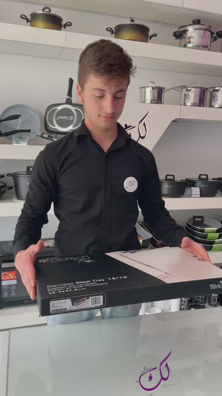 •اللون : مقابض باللون الذهبي، صينية باللون الفضي.
