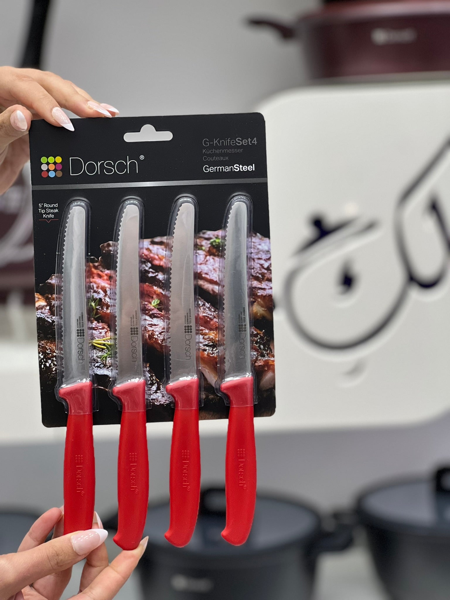 طقم سكاكين ستيك حاد - 4 قطع - أحمر