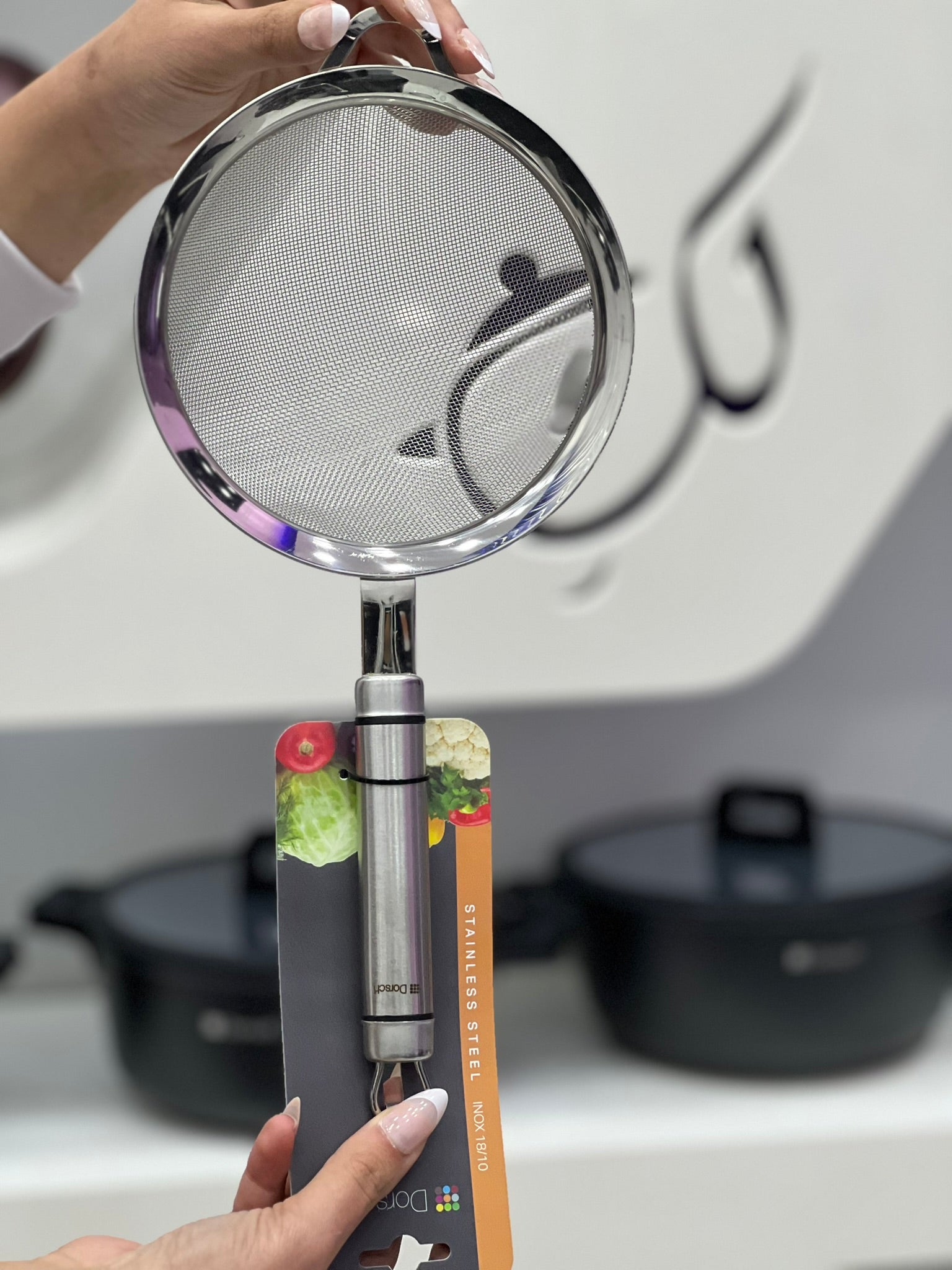 مصفاة دورش أداة مطبخ متعددة الاستخدامات ومتينة، مثالية لمهام مثل الشطف والتصفية والغربلة. مصنوعة من الفولاذ المقاوم للصدأ عالي الجودة، مما يوفر الأداء العملي وطول العمر.