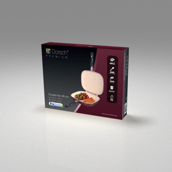 Grill your favorite meats, seafood, and vegetables efficiently with the Dorsch Premium Double Grill Pan 36 cm. Its double-sided design ensures even cooking while using minimal oil for healthier meals.