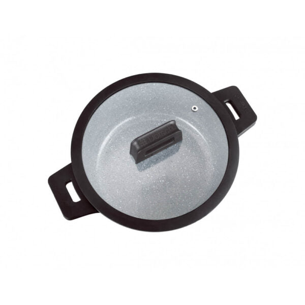 Proglider Non-Stick Marble Ceramic Coated, Die-casting aluminumCasserole - Ø24 cm - 4 LGlass Flat Lids with Silicon RimRemovable Silicon HandlesDim: 24xh11.2cm